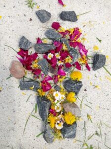 Je pense qu’un des chats des voisins l’a tuée, et, avec le temps, la peau a pourri et a permis de découvrir et d’examiner les os du squelette mais on voit encore un peu de ses poils. On voit bien sa mâchoire, ses dents et sa colonne vertébrale.