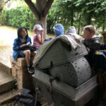 Après avoir bien profité des attractions le matin et après un pique nique quelque peu humide… nous avons rencontré les artisans du village : boulanger, coutelier, bourrelier, moulinier, savonnière, forgeron, tisserande, berger et instituteur.