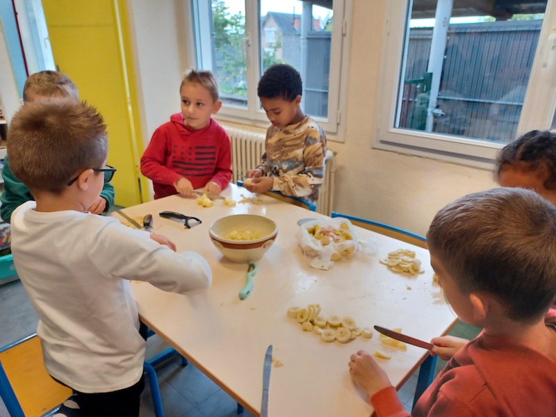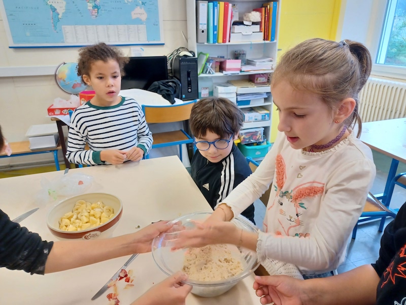- Le vendredi 19 octobre, ils ont réalisé la recette du crumble pommes-bananes à la cannelle de leur manuel de lecture Piano CE1.