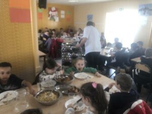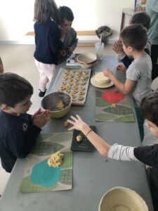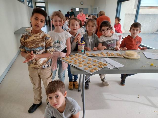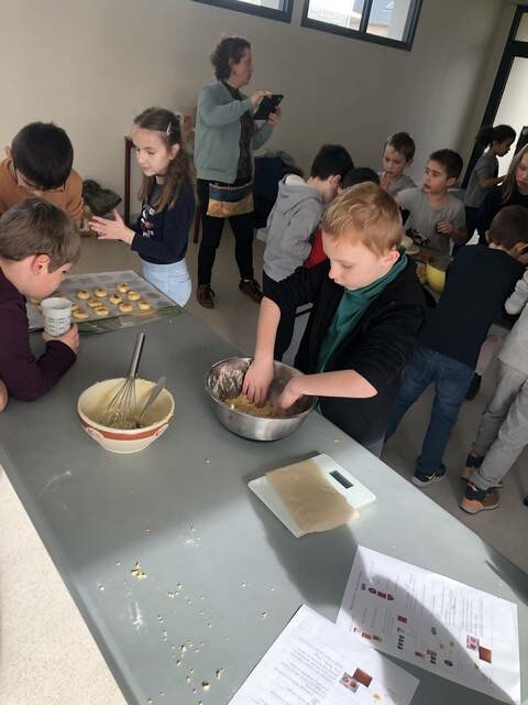 Au menu : lecture de recettes, pesée avec différentes balances, coopération, écoute, vivre ensemble…et bien sûr dégustation de 3 à 102 ans ! Nous avions suffisamment cuisiné pour partager nos biscuits avec les élèves de maternelle qui se sont régalés ainsi que les résidents de l’Ehpad que les élèves de CP sont allés voir dans l’après-midi !