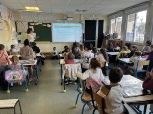 Les élèves de Grande Section sont allés résoudre quelques problèmes mathématiques avec les élèves de CP. Ce travail en commun leur a permis d’échanger sur les techniques d’organisation du matériel pour mieux réussir à résoudre des problèmes de partage notamment. D’autres séances de travail GS/CP leur seront proposées jusqu’à la fin de l’année.