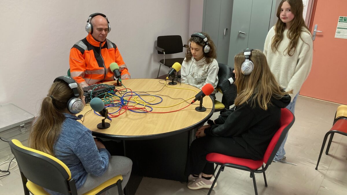 Cléa, Leya, Lia, Clydie, Sérah et Louanne interrogent Nicolas Grandjean du service technique de Dun.