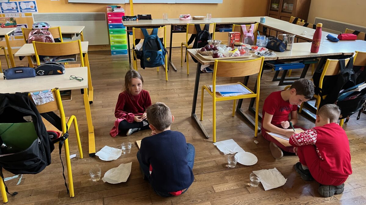 Je remercie les enfants et les parents qui ont joué le jeu, ce qui a permis aux élèves de déguster de nombreux aliments.