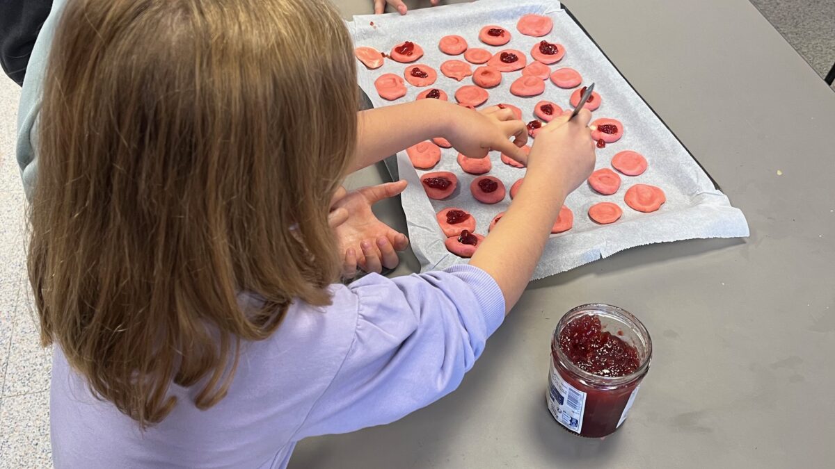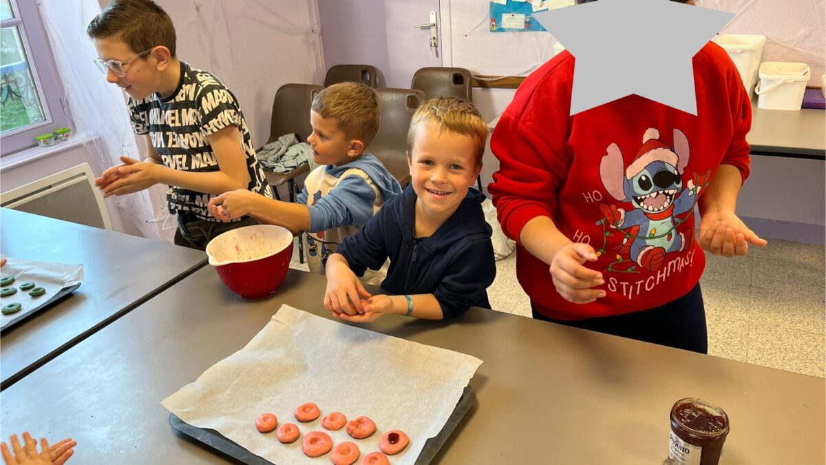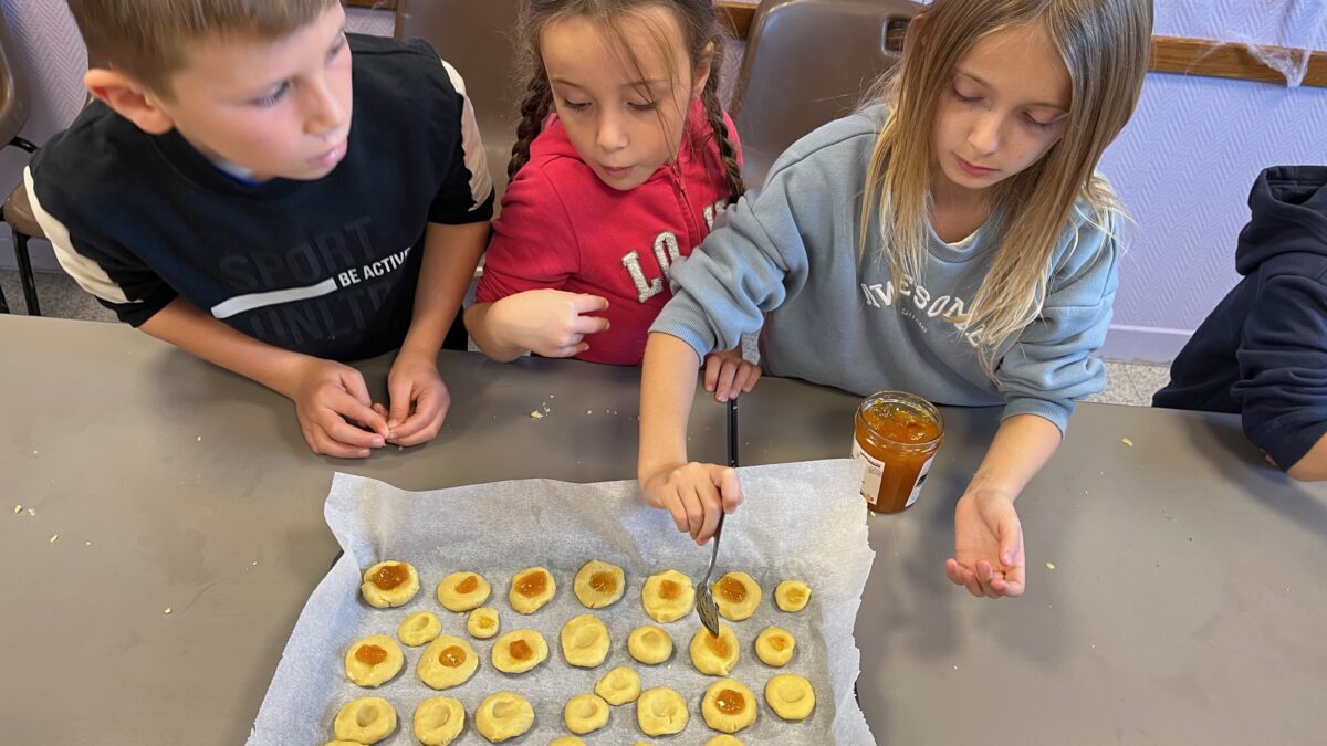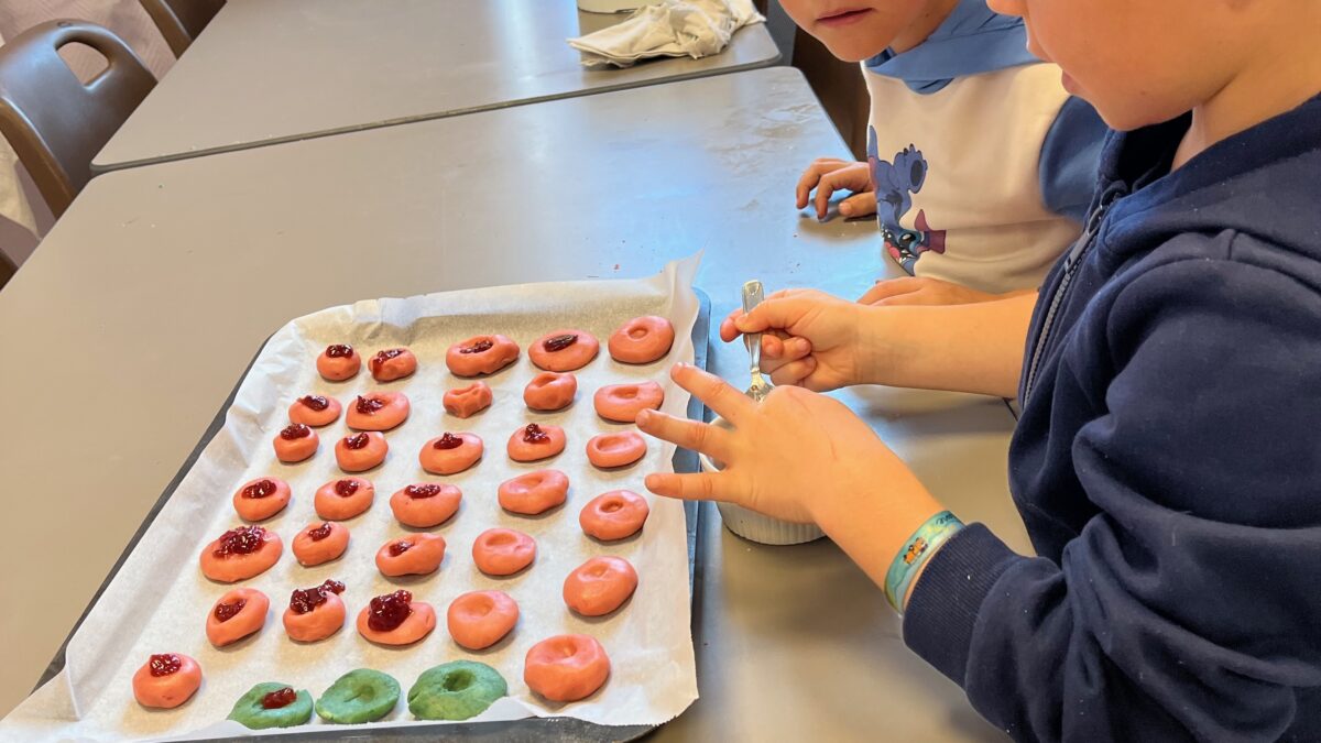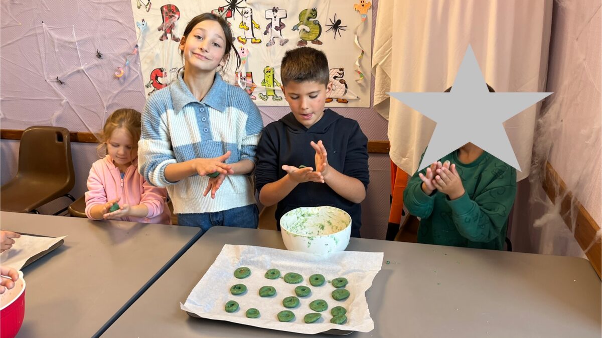 Lors de l’atelier cuisine, les élèves étaient en groupe pour confectionner des sablés aux couleurs de la semaine.