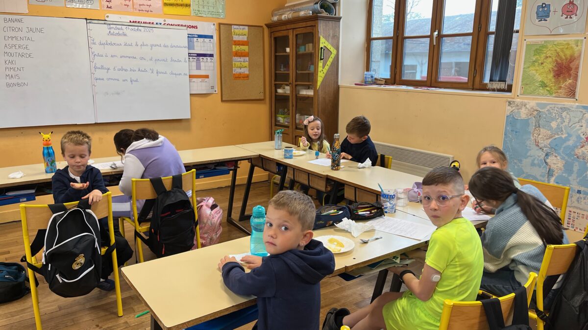 Les enfants ont travaillé en binôme, CP-CM afin de favoriser la coopération entre les niveaux. Chaque élève donnait son avis sur l’aliment dégusté.