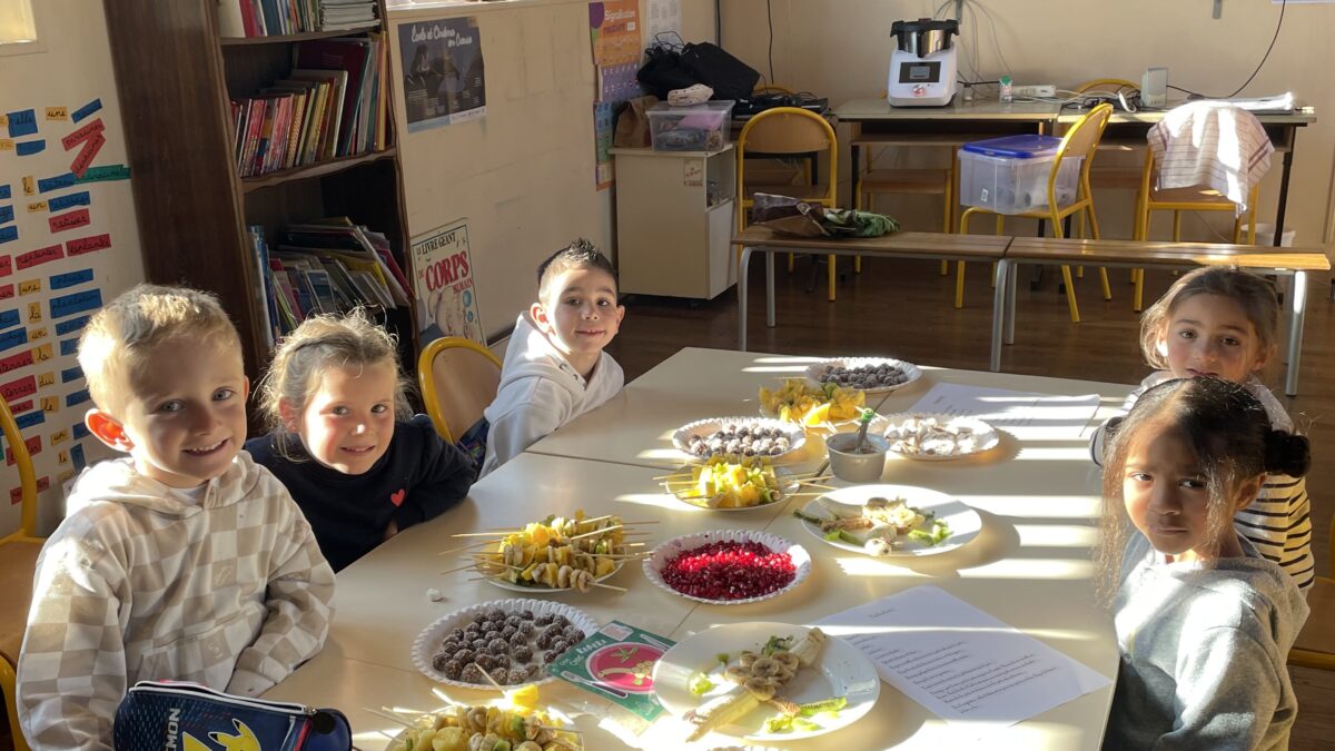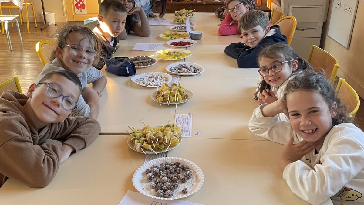 Les élèves ont découvert plusieurs fruits secs ainsi que des fruits exotiques avec des dégustations à l’aveugle. Ils ont ensuite confectionné plusieurs recettes et ont convié leurs parents et la municipalité à venir les déguster.