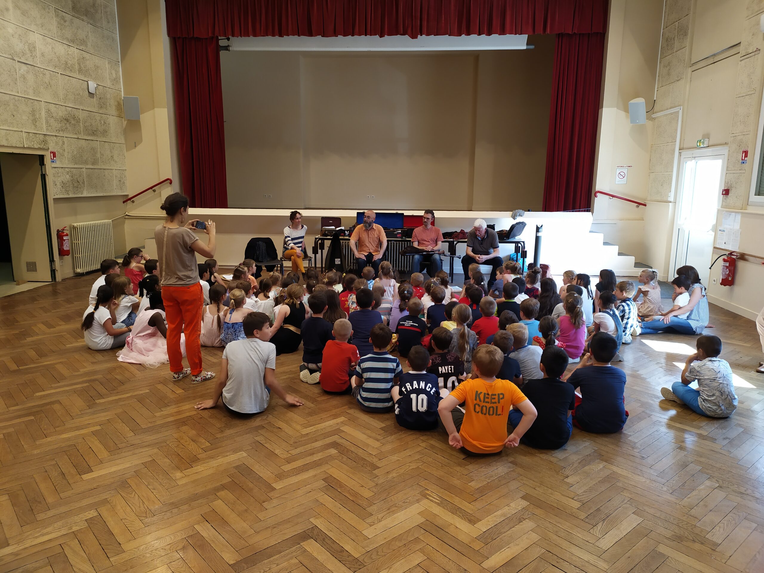 A la fin des 9 danses, nous nous sommes assis puis les musiciens ont présenté leurs instruments : l’accordéon, le violon, les cornemuses, la vielle et … les voix !