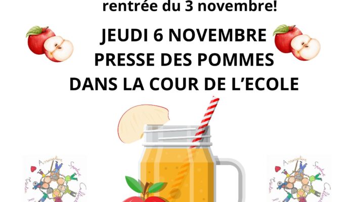 Pensez à apporter des pommes à l’école jusqu’à jeudi matin. Bonne cueillette mercredi !!