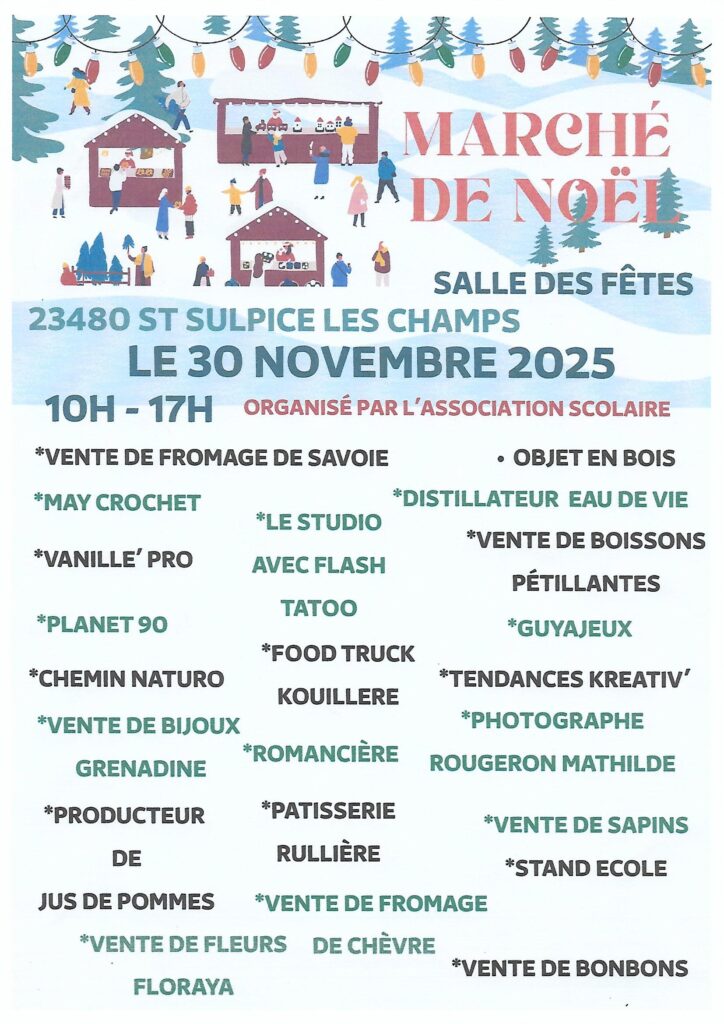 L’association scolaire organise un Marché de Noël le dimanche 30 novembre, salle polyvalente.