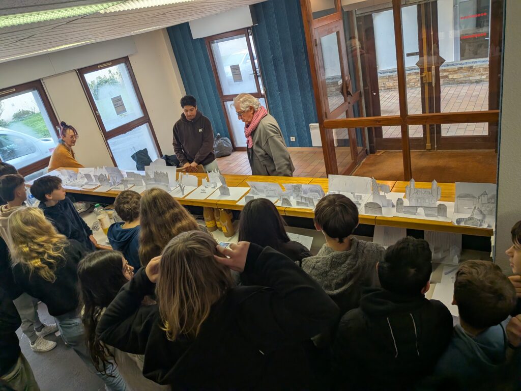 Vendredi 21 novembre 2025, les élèves de 5ème CHAAP ont participé à « l’Atelier Hors les Murs » organisé à Jumilhac-le-Grand par le Parc Naturel Régional Périgord Limousin en partenariat avec l’Ecole Nationale d’Architecture de Clermont Ferrand et le Master Ingénierie de projets culturels de l’Université Bordeaux Montaigne. Les élèves étaient en partie encadrés par des étudiants pour réaliser des arpentages dans le bourg visant à réfléchir à des propositions d’aménagement. Un dernier exercice a permis de mettre en forme quelques-unes de leurs idées. Cet exercice grandeur nature offre l’occasion aux élèves d’échanger avec des techniciens, des élus et de confronter leurs points de vue.
