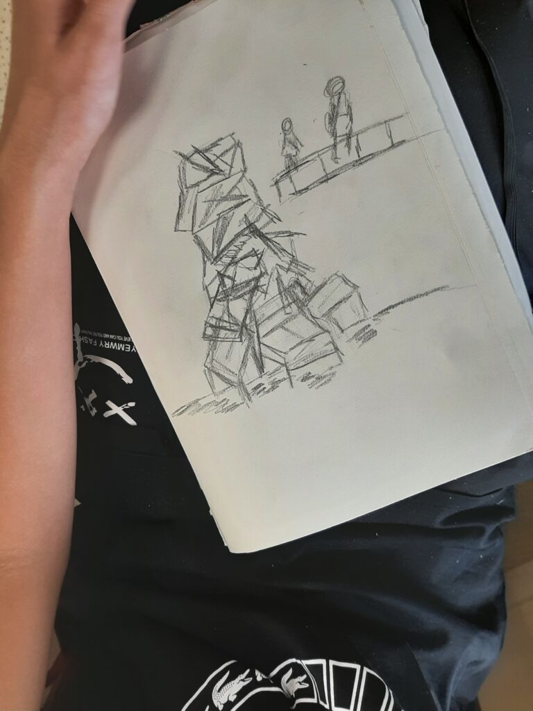 Après les dernières finitions, y compris le ponçage, les élèves ont dessiné sur le motif en cherchant à retrouver par le dessin les formes qu’ils avaient eu à construire.