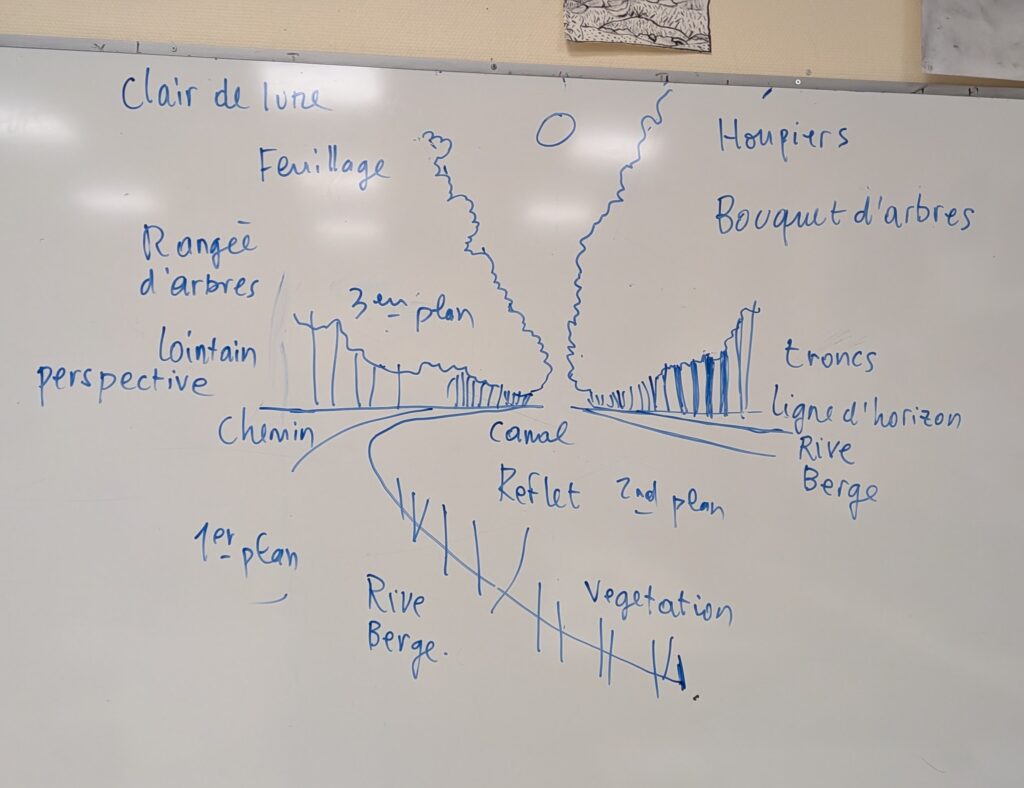 Ces séances ont pour objectifs de familiariser les élèves à la lecture d’image en passant par l’usage d’un vocabulaire approprié et par l’organisation des idées. Elles ont aussi pour but d’aider les élèves à se repérer dans les étapes du dessin : repérer les lignes de force et la construction de l’image, distinguer les plans etc…