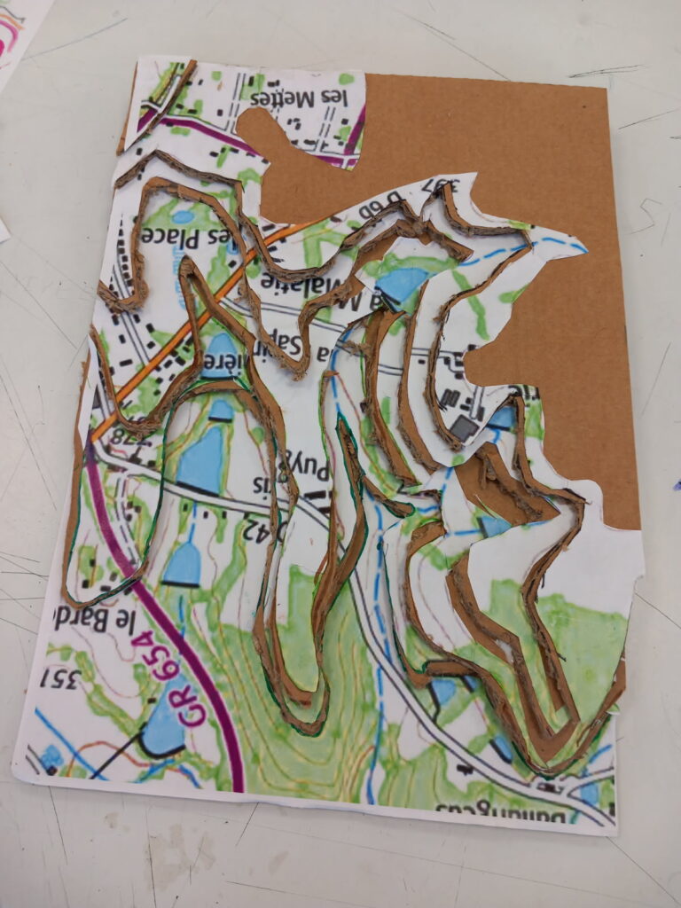 Vendredi 21 novembre 2025 Fannie Loget de la Maison de l’architecture du Limousin a encadré le second atelier dédié à la réalisation des cartes en relief.
