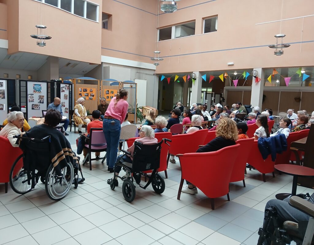 L’après-midi du mardi 23 septembre, nous nous sommes rendus à l’EPADH du Roussillon, situé non loin de l’école, pour assister à un premier spectacle, proposé dans le cadre des Zébrures d’Automne, par l’association culturelle des Francophonies.