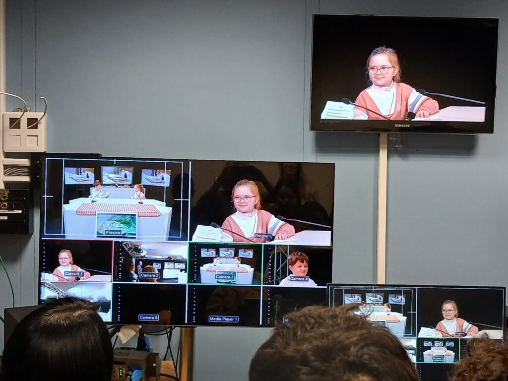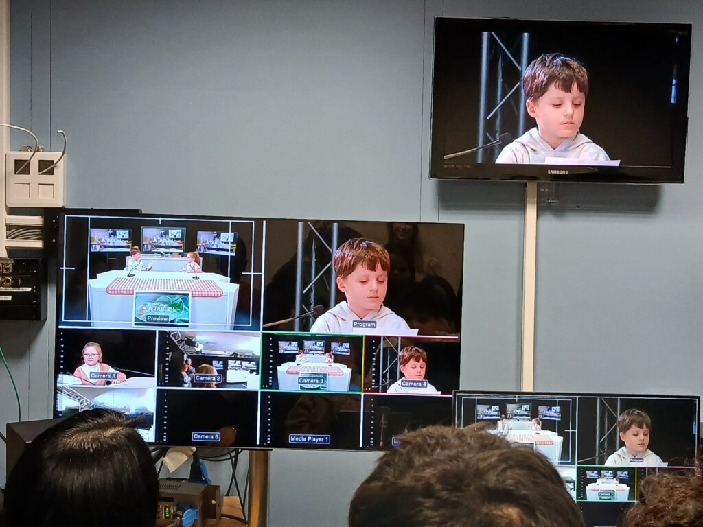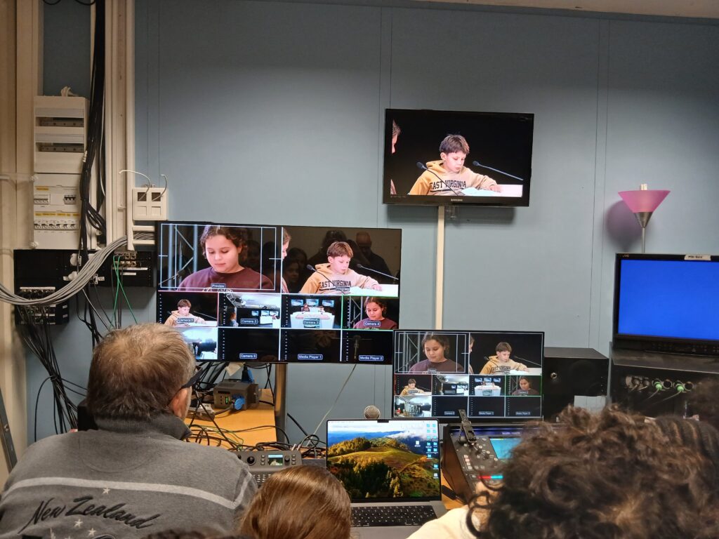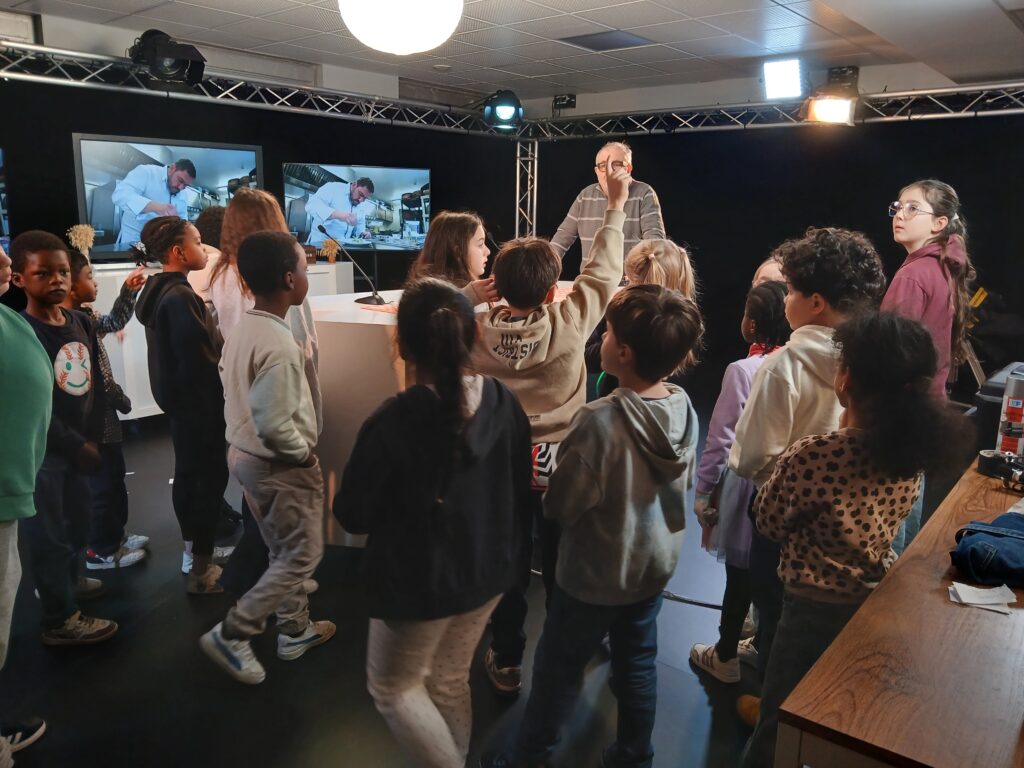 Mr Alain Druot, le chef d’équipe, nous a fait visiter les locaux, découvrir le plateau et la régie. Nous étions accompagnés de Manon et Jean-Christophe, tous les deux maitre et maitresse, spécialistes du multimédia et qui étaient déjà intervenus dans notre classe pour nous parler de l’influence des images dans notre société.