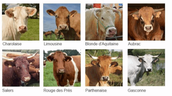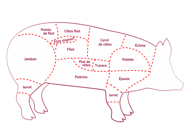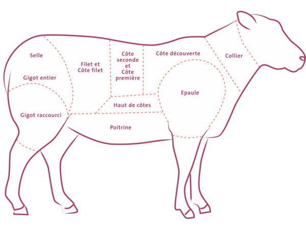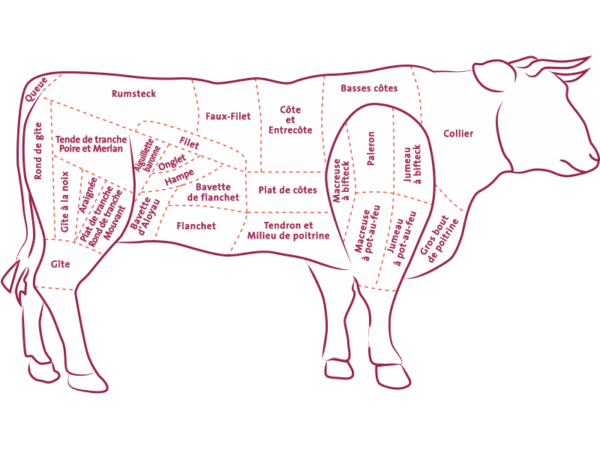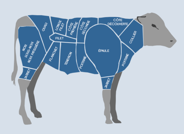 Voici les noms des morceaux de viande de la vache, du cochon, de l’agneau, du veau.