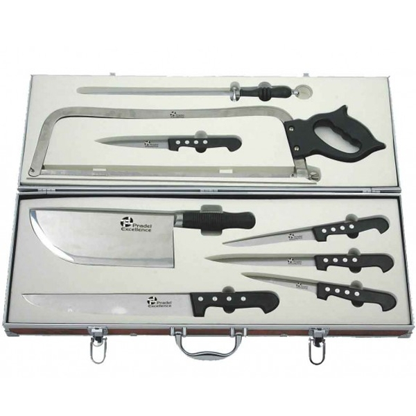 Voici les outils qui sont utilisés en boucherie : les crochet, fils, machine à steak haché, grattoir, la mallette et voici une vitrine pour mettre la viande.